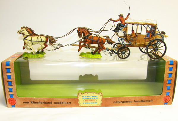 Postkutsche Nr. 7714  vierspännig in org. Hausser OVP, IIIer Bemalung aus der 7 cm  Serie,